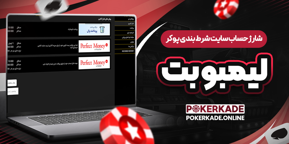 برای شروع فعالیت در سایت شرط بندی پوکر لیمبوبت اولین قدم شارژ حساب کاربری است. این بخش اهمیت زیادی دارد چون بدون افزایش موجودی امکان ورود به بازی ها و شرط بندی وجود ندارد.
